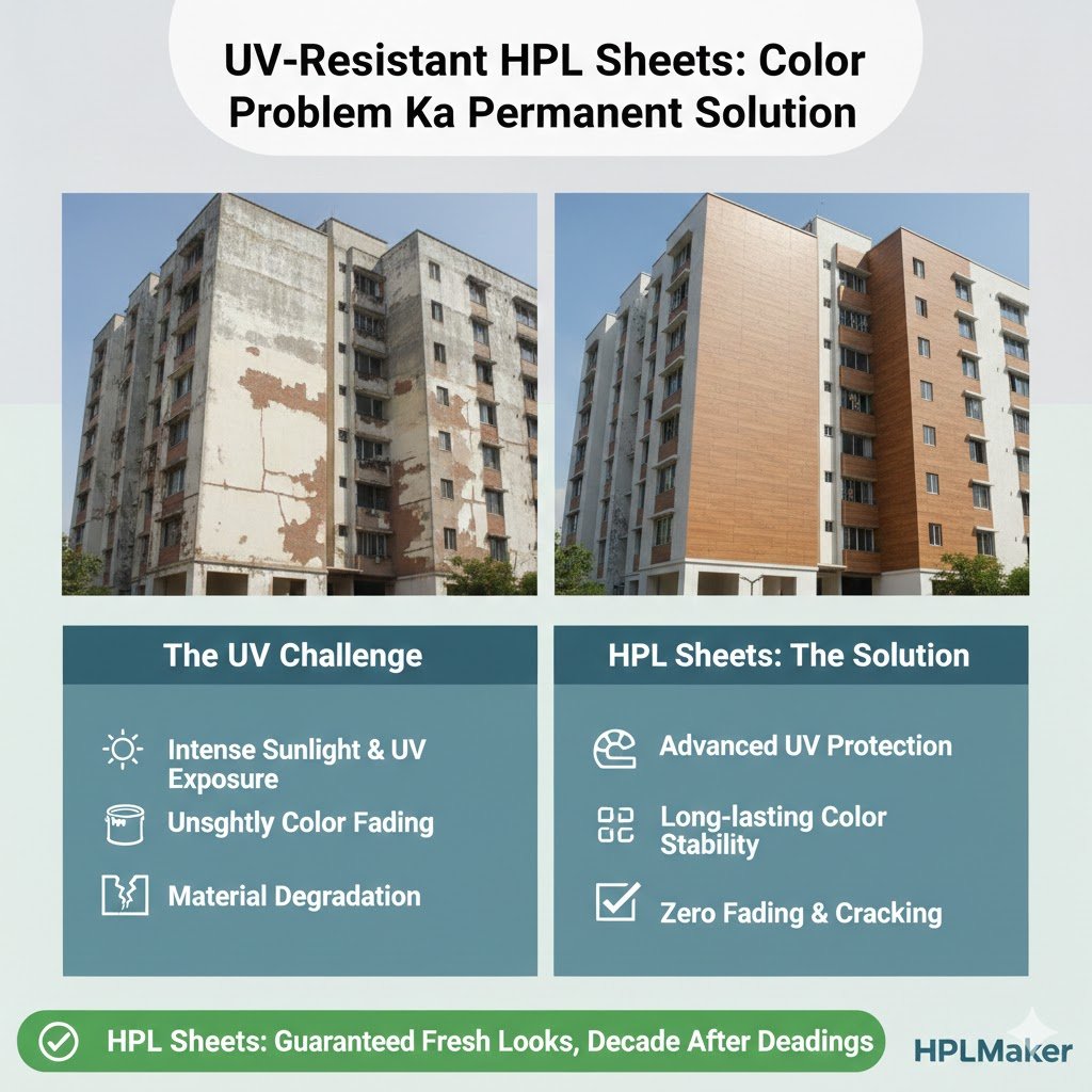 Isi problem ka permanent solution ban rahi hain UV-resistant HPL sheets.